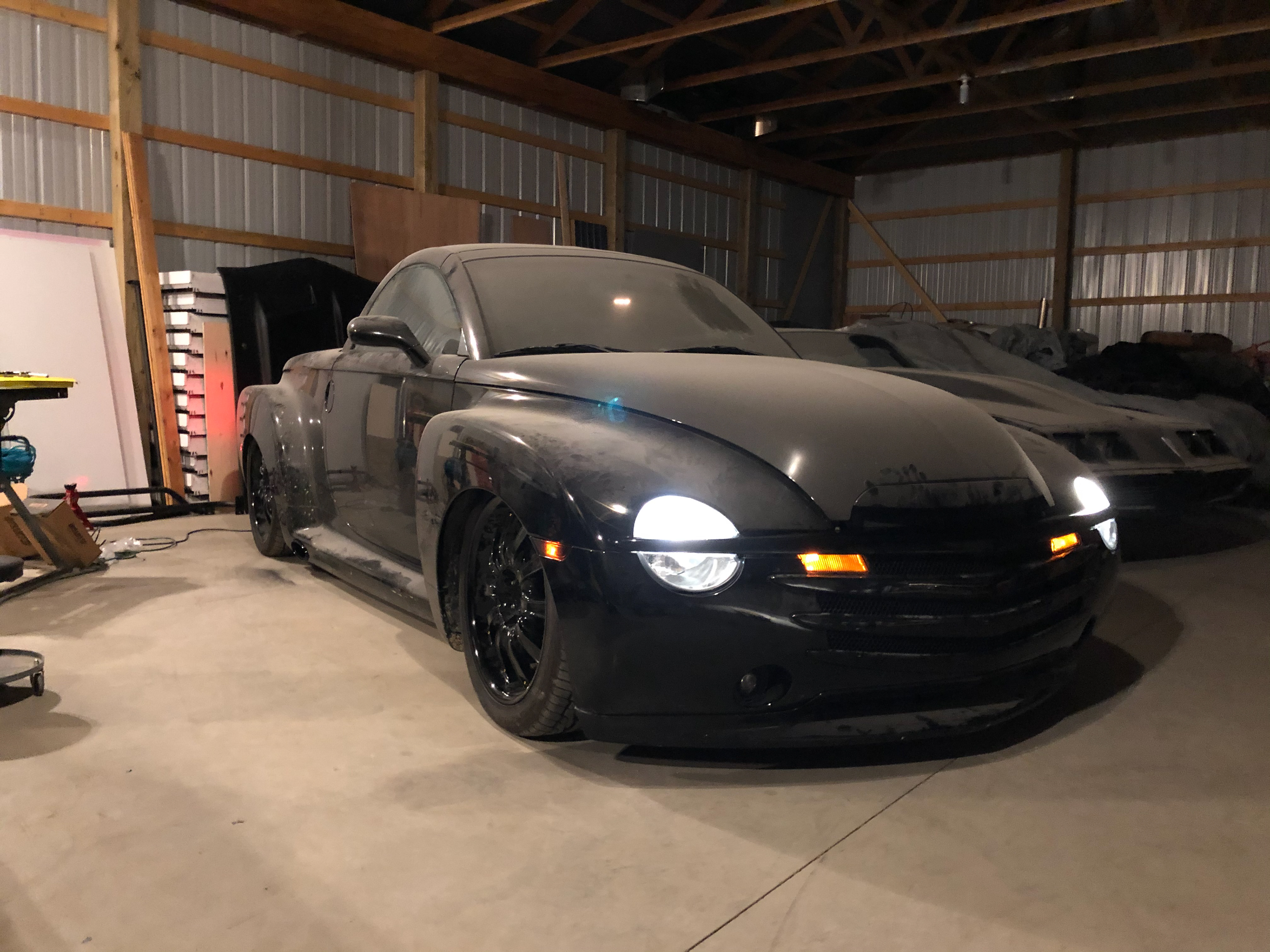 This 2005 chevrolet ssr build is my personal car. the air suspension was custom designed by master fabricator Chad Carter starting with a trailblazer frame and suspension cad data provided by sema. Some of the custom modifications are the c-notch, bag mounts, control arms, compressor and manifold trunk mounts, blacked out lights, custom cnc badges, custom front and rear fascia, integrated side pipes into rockers, custom audio, staggered 20"/22" wheel setup, and more to come.