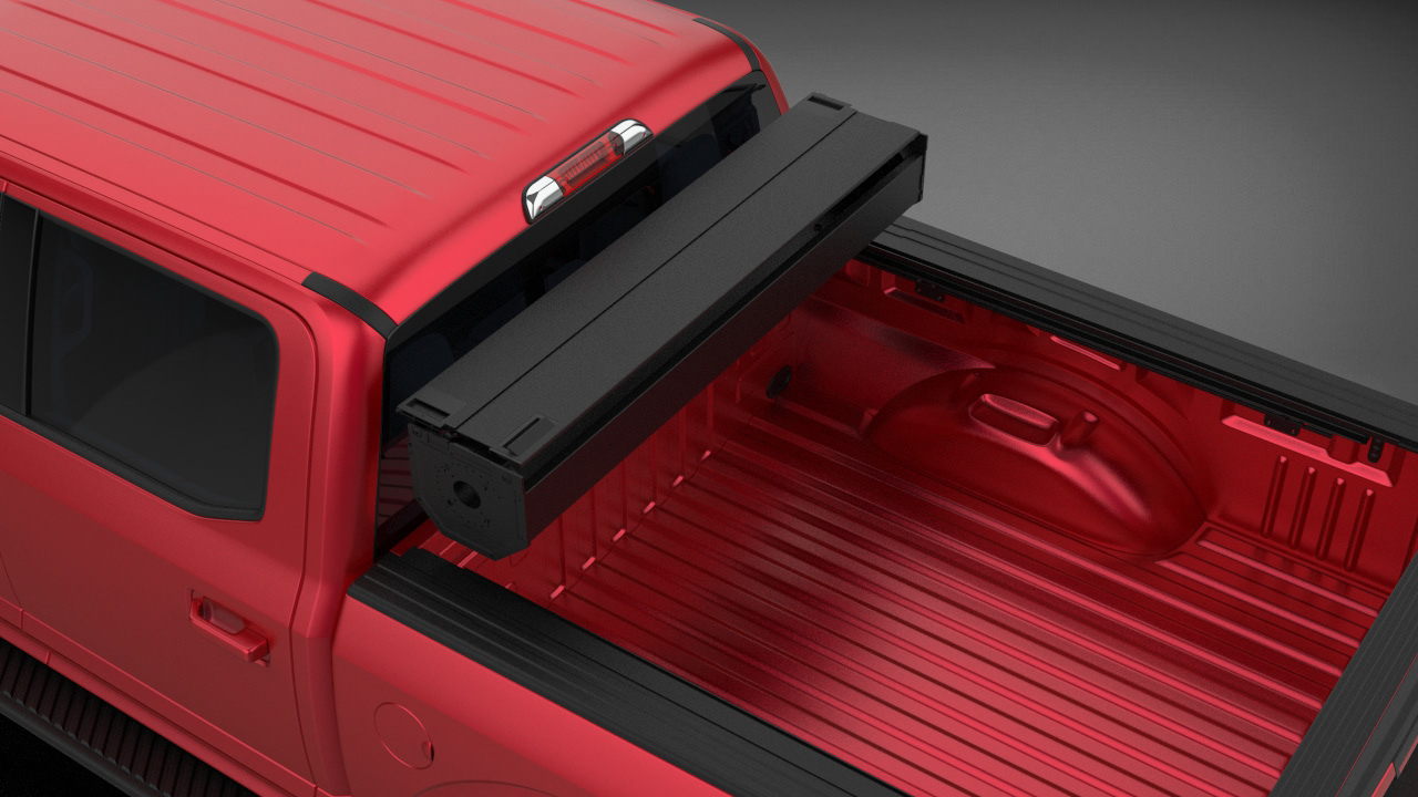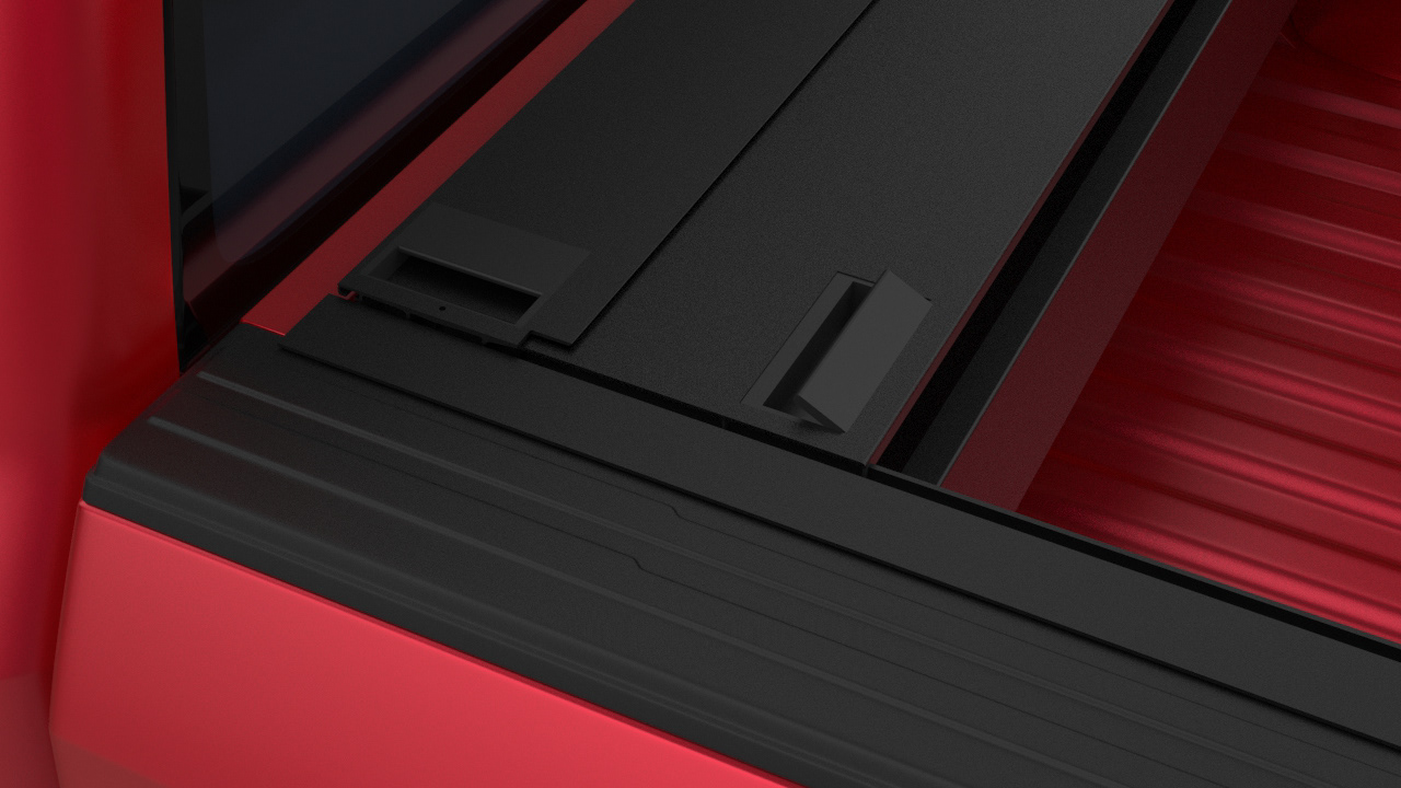 the retrax flush bed cover was requested to refresh a current canister style bed cover. the main features will include flush handles, low profile side rails, and quick removable canister options.