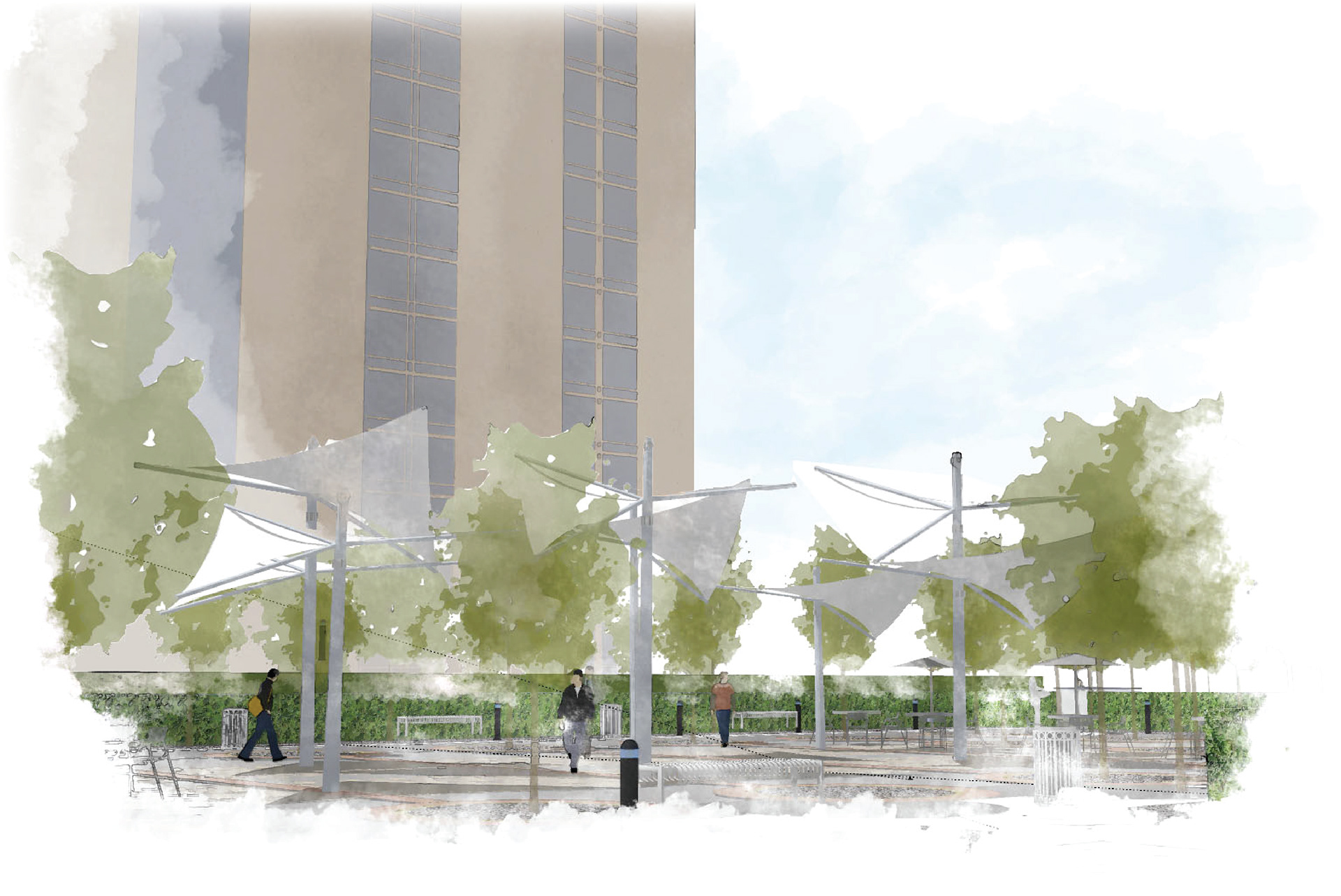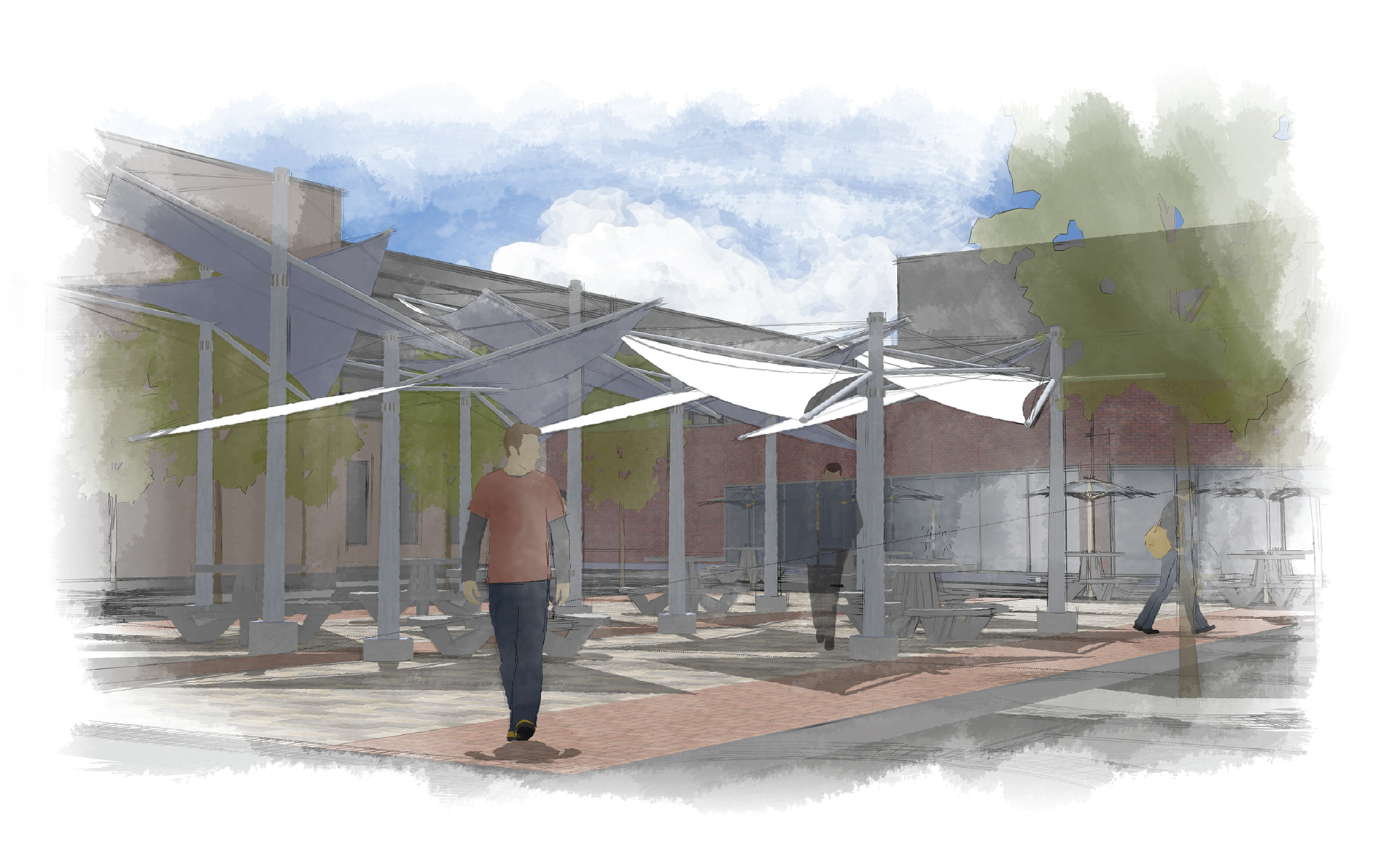 the saint Joseph mercy hospital tensile structures was my first large architecture project. It was designed to allow families and colleagues to have a spot to relax and unwind in a courtyard outside the main health tower.